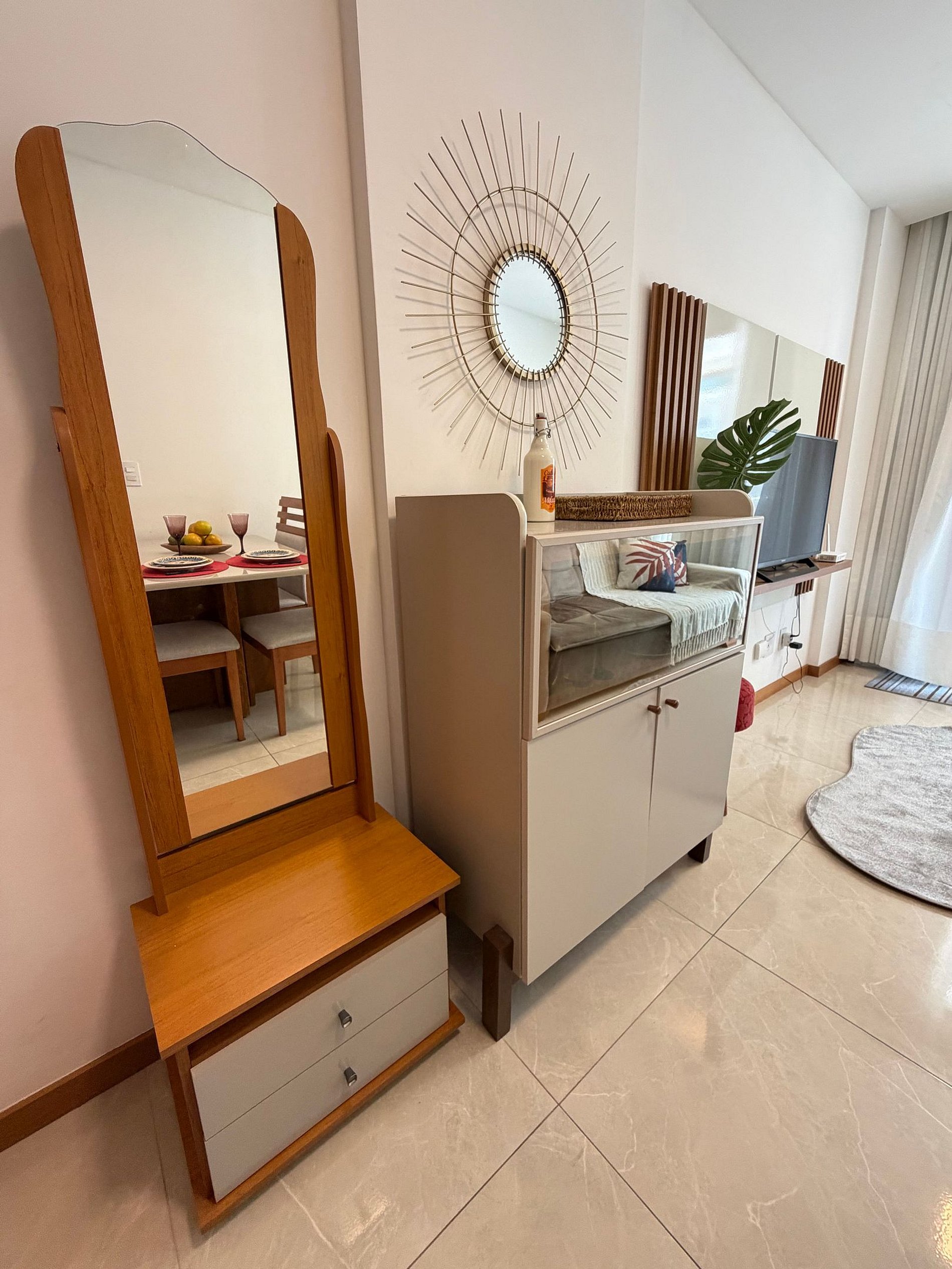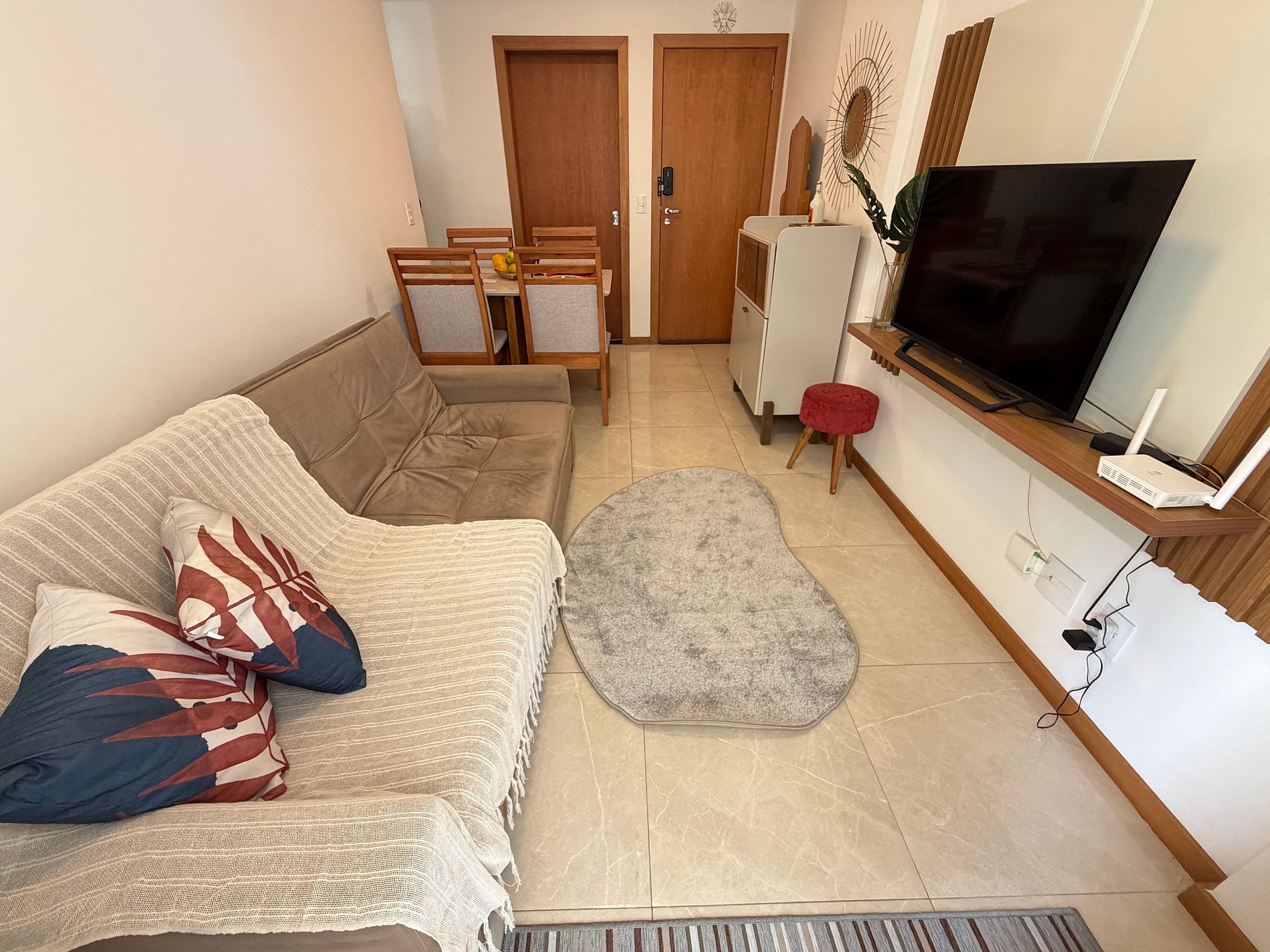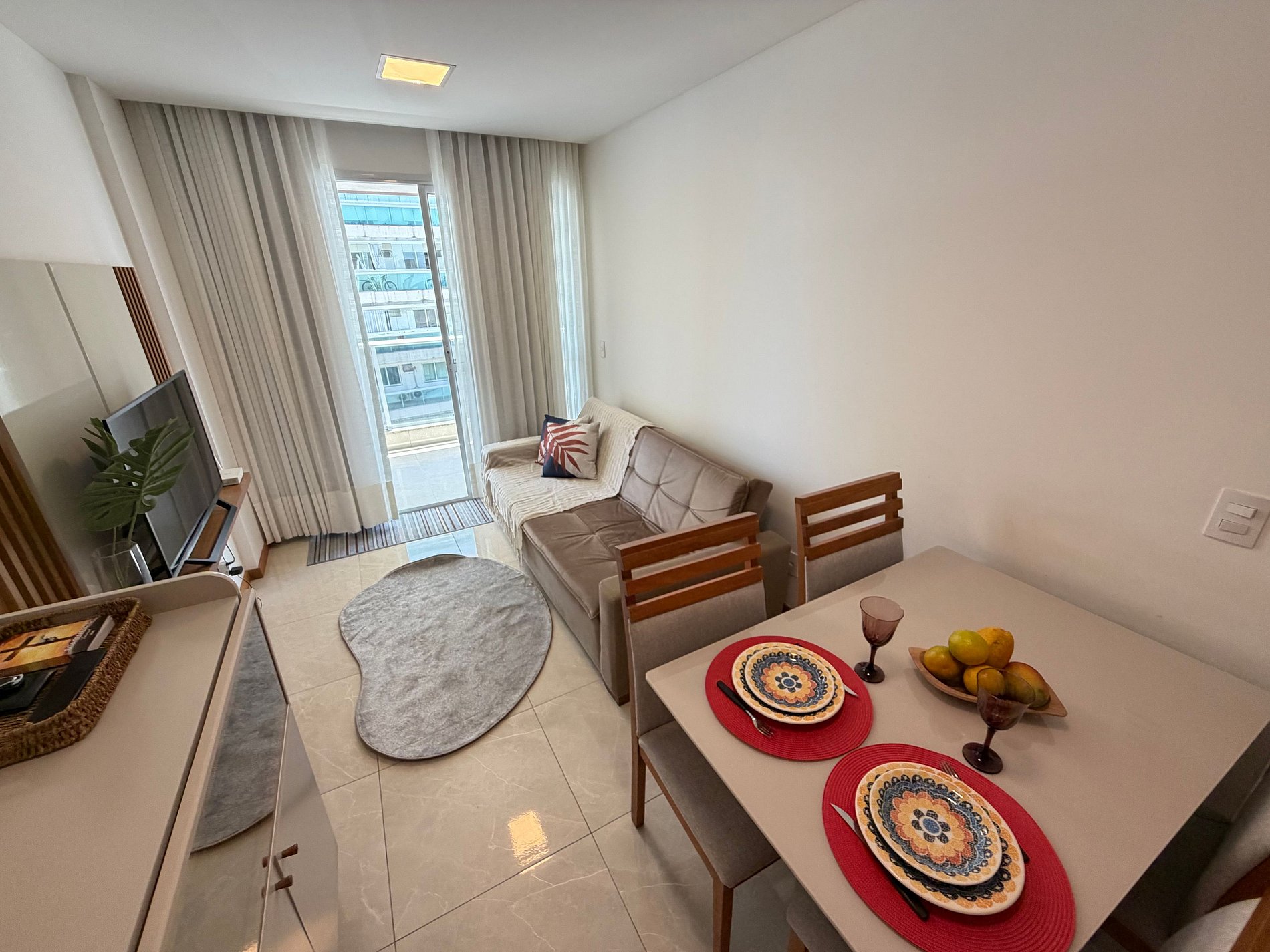 Conheça nosso ap: 1 quarto com cama de casal, um sofá cama, ar-condicionado, cozinha equipada (Air Fryer, micro-ondas, panelas, copos e taças), TV smart e mesa de jantar. Vaga de garagem. Roupa de cama e banho. Conforto e praticidade te esperam a alguns passos do mar, ao lado de academia e hortifruti, padaria e supermercado.