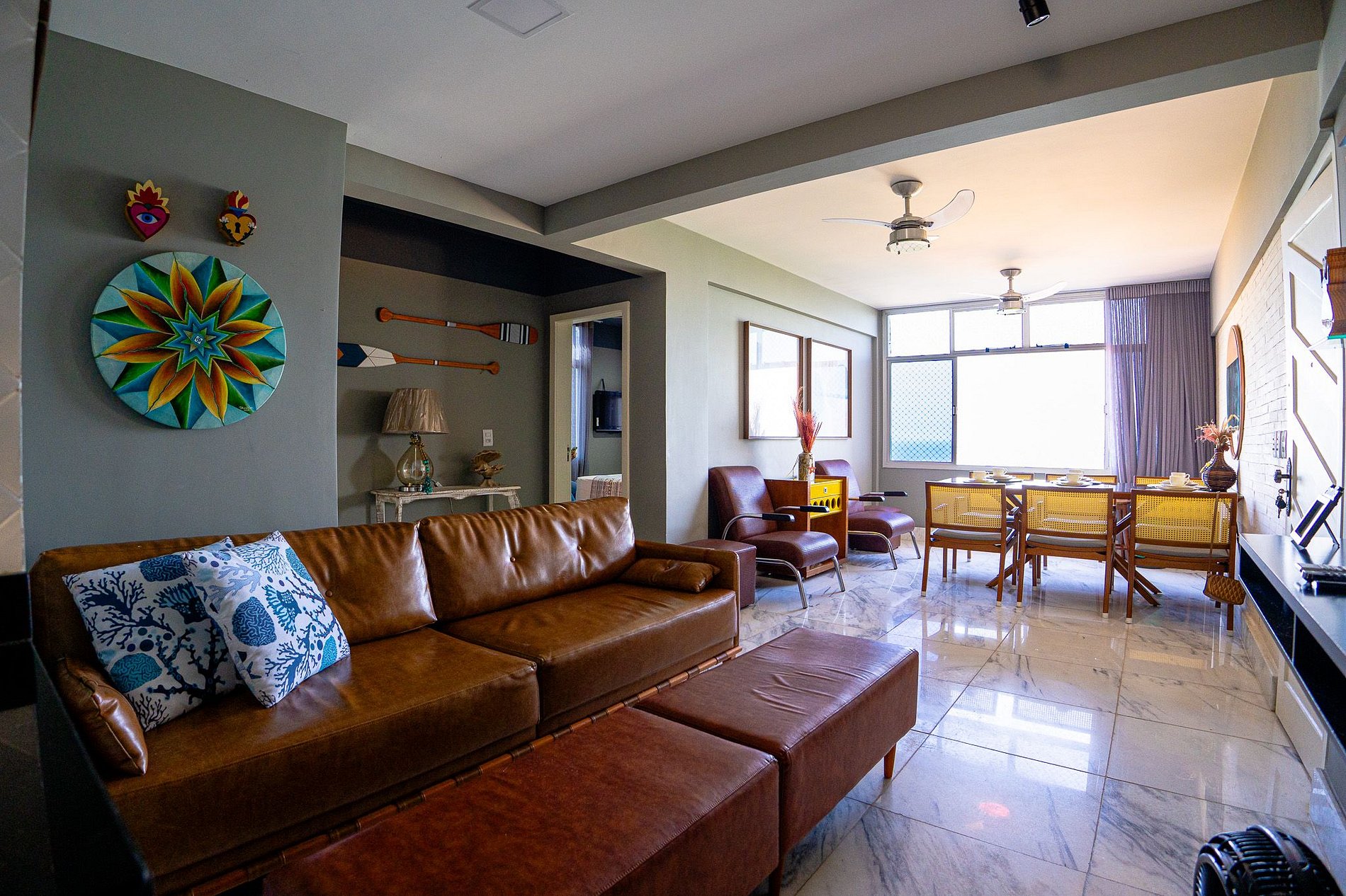 O apartamento é aconchegante e foi montado pensando em cada detalhe para deixar sua estadia mais leve e agradável. Os três quartos possuem ar condicionado, a cozinha está super equipada: fogão, forno, airfryer, geladeira, liquidificador e muito mais. Também oferecemos Wi-Fi de alta velocidade, máquina de lavar, roupas de cama e toalhas limpinhas, além de telas nas janelas para segurança dos pequenos. Tudo para você só se preocupar em relaxar. A localização é um dos grandes destaques: pertinho de padaria, supermercados, restaurantes tradicionais (como o famoso Atlântica), sorveterias ( embaixo do prédio ) e muito mais. E se bater vontade de passear, você está colado em pontos turísticos como o Morro do Moreno, o Farol de Santa Luzia e as encantadoras Praia Secreta e Praia da Sereia.