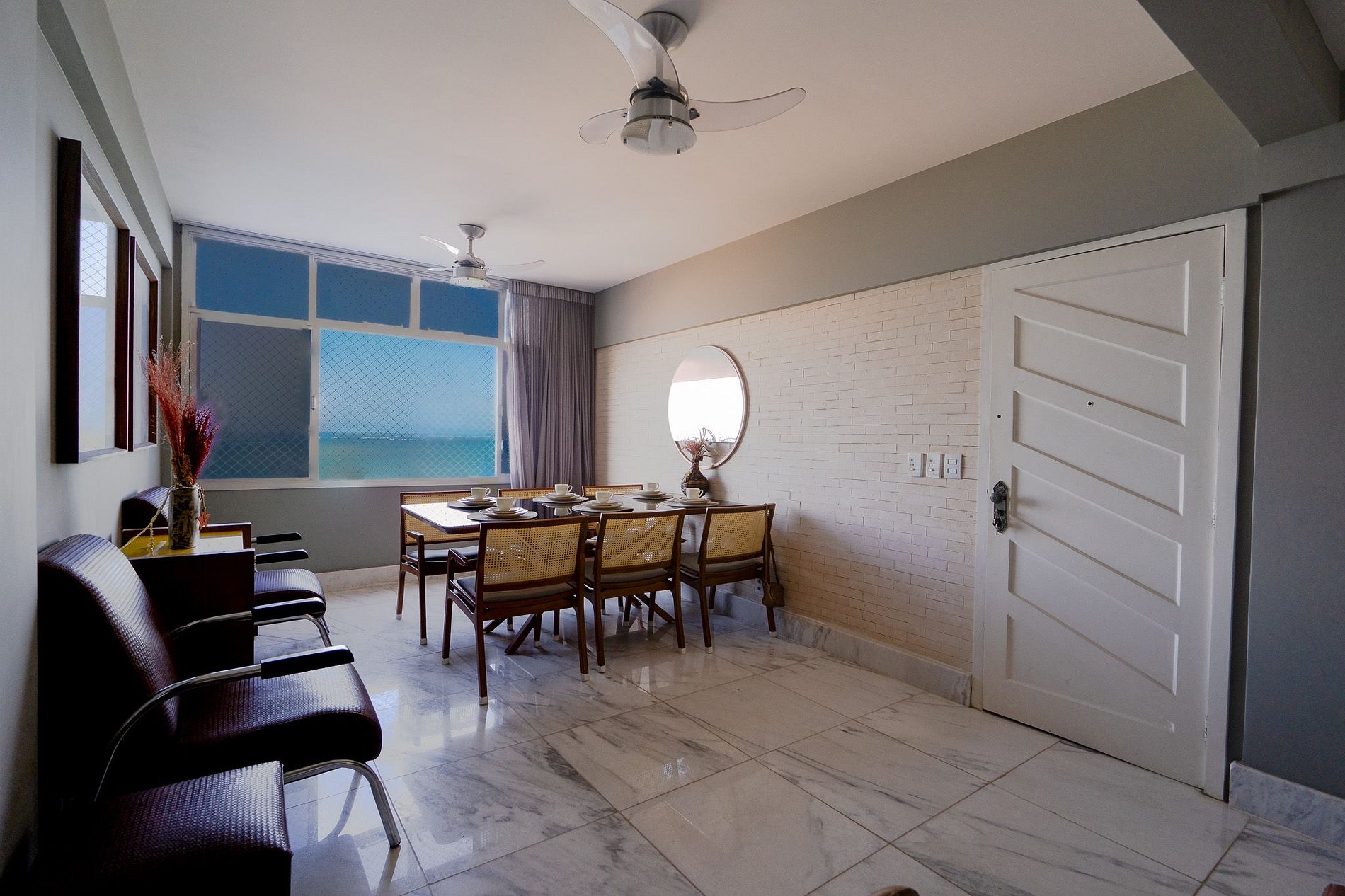Acorde com a brisa do mar e o som das ondas nesse charmoso apartamento de 3 quartos climatizado, para até 06 hóspedes e crianças menores de 4 anos não contam, com vista incrível para a Praia da Costa. O lugar é perfeito para quem busca dias de descanso com conforto e praticidade, a poucos passos da areia. Ao entardecer, explore a região: tem feirinha, comidas típicas e muito artesanato local. Aqui, você se sente em casa com a vantagem de estar de frente para o mar.