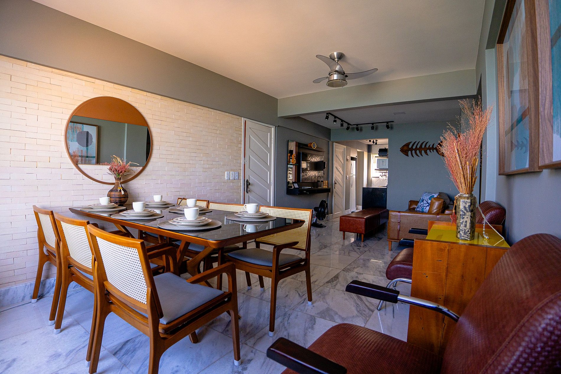 Área de estar com sofá/cadeira